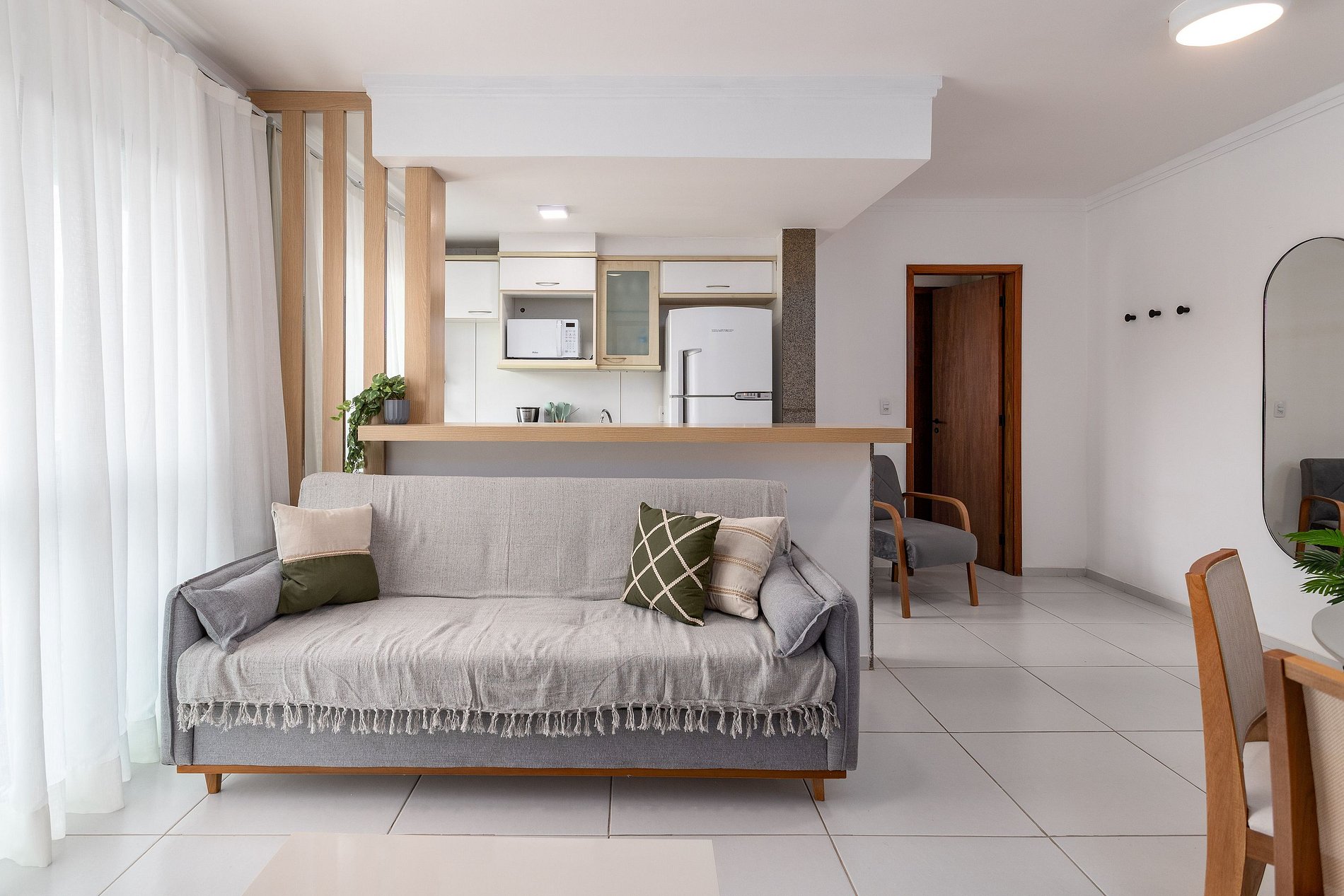 - Acomoda até 6 pessoas, sendo 1 no sofá cama da sala
