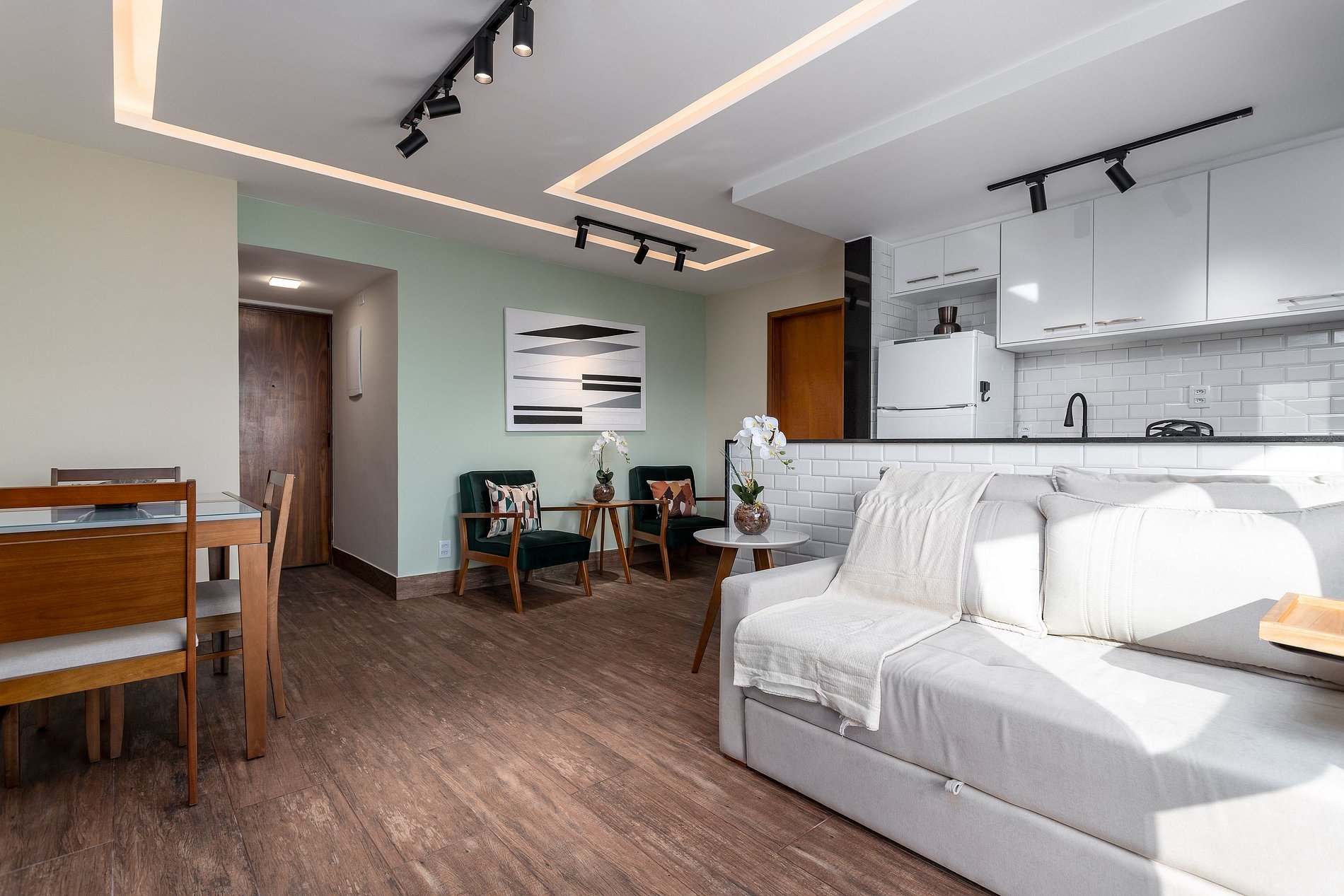 - Acomoda até 5 pessoas, sendo 1 no sofá cama da sala
